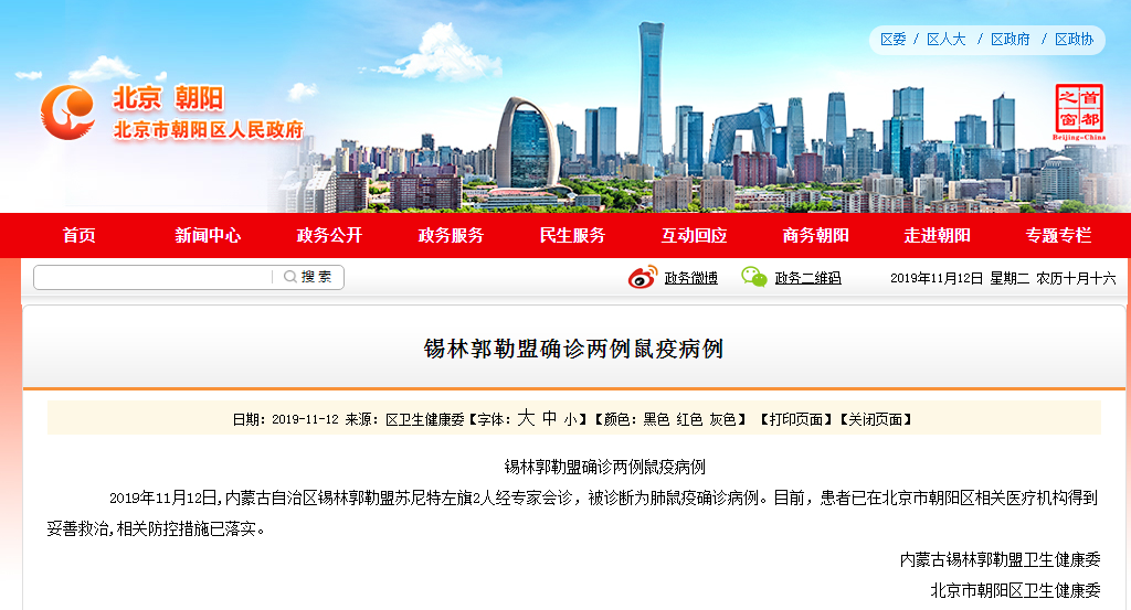 ●据市向阳区人平易近网坐12日传递,2019年11月12日,自治区锡林郭勒盟苏尼特左旗2人经专家会诊,被诊断为肺鼠疫确诊病例。目前,患者已正在市向阳区相关医疗机构获得妥帖救治,相关防控办法已落实。