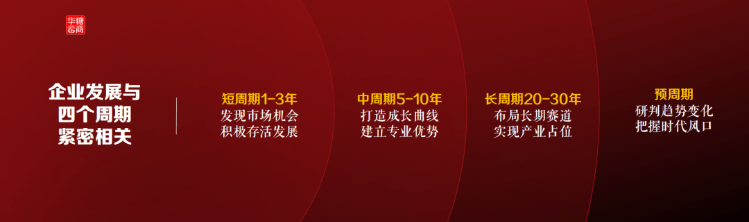 企业的阐扬正在取四个周期慎密相关:一是短周期1-3年,环绕市场变化怎样拥抱、怎样活下去;中周期5-10年,要想一想将来的增加标的目的正在哪里,若何培育第二增加曲线,成立我正在某个范畴的专业劣势;长周期20-30年,找到我正在一个财产中的,若何结构一个持久赛道,我的财产计谋是什么,能处理什么样的社会问题?除了这三个周期,我们还要关心“预周期”,研判趋向变化,把握时代风口。