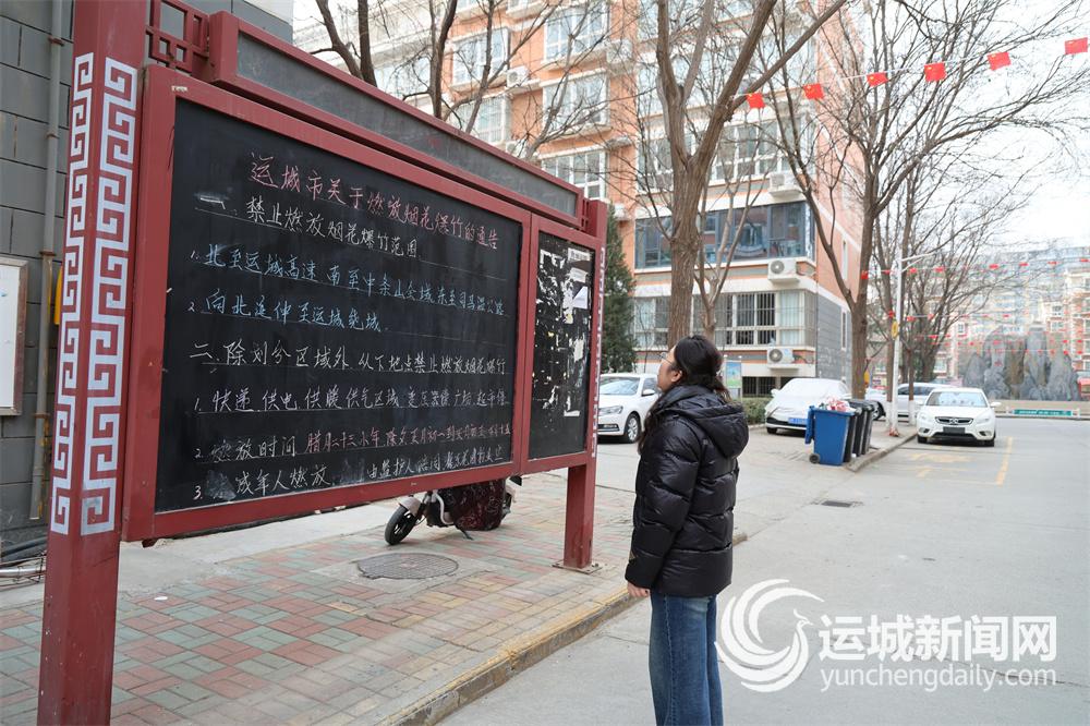 政策落地,离不开详尽的宣传指导取结实的下层管控。2月2日,记者走进盐湖区东城街道金鑫·槐东花圃小区,只见印着“禁放烟花爆仗,共建安然家园”的宣传非分特别夺目,宣传栏上用彩色粉笔书写的烟花爆仗平安燃放留意事项,清晰着居平易近规范行事。