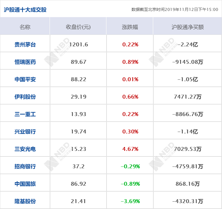 北向资金11月12日净流出0。11亿元。格力电器、贵州茅台、兴业银行别离遭净卖出2。47亿元、2。24亿元、1。14亿元;五粮液、美的集团别离逆市获净买入2。53亿元、1。5亿元。