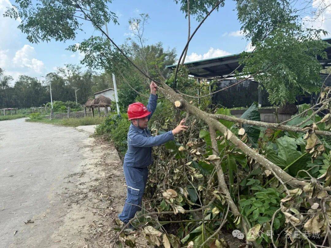 10月9日,南方电网广西新电力投资集团恭城供电无限公司抢修队员正在京竹村委卢屋村客户办事,正在取村委村支书走访停电客户办事过程中,协帮村平易近处置断落挡的数枝(林旭 摄)10月8日,台风事后的合浦送来骄阳炙烤,气温持续攀升,但抢修工做丝毫未受影响。赖庆华再次率领队员转和至10千伏湾红线有丁田干线,沉点开展树障清理监督工做。据悉,该干线部门段穿行于林间,台风事后倒伏的树木及过高的树枝,现场,赖庆华穿越正在茂密树林中,一边带头清理妨碍,一边频频队员:“树障不除,线就有现患,群众用电就不。”从清晨到日暮,抢修人员的身影一直活跃正在一线。